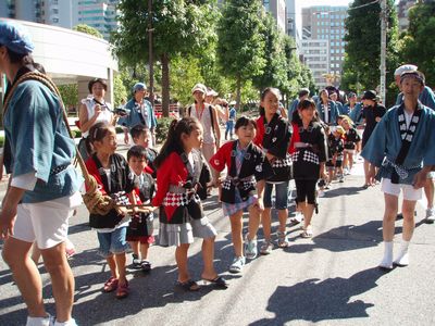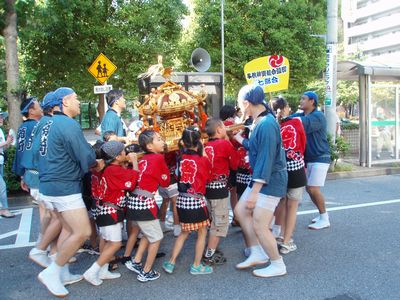 手前は箱崎・北新堀町会の子供神輿