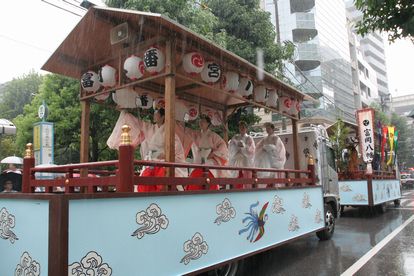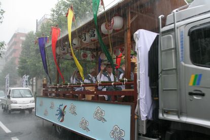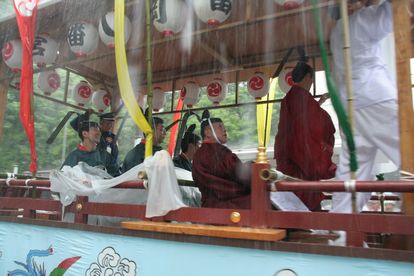 雨は酷くなるばかり。舞姫は雨合羽を着て、次の舞に備えます。