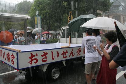 お賽銭の投入したら、びしょ濡れになっちゃった。。。
