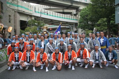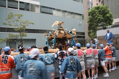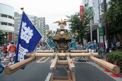 神輿はトラックに積んで、先に門前仲町へ運び込みます。