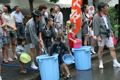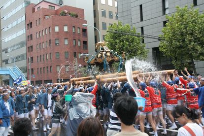 永代通りでも水かけ祭!