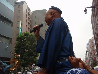 古石場までの長い連合渡御も、総代の締めで無事終了。