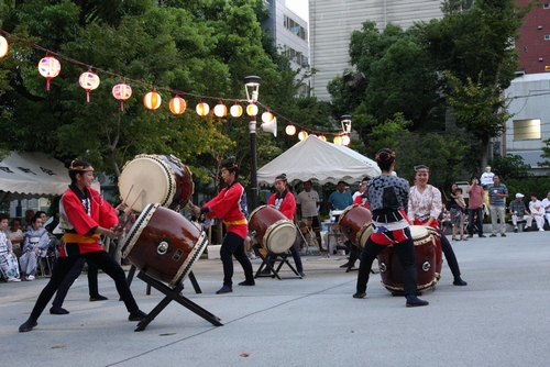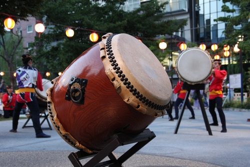 和太鼓演奏に、自然と人が集まってきます。 !!