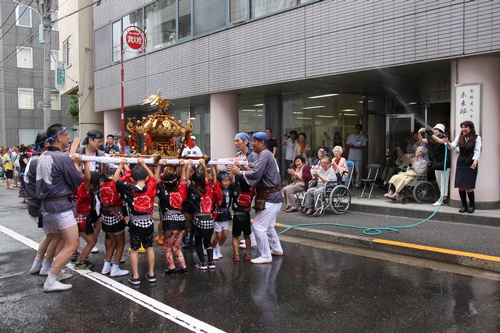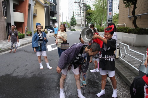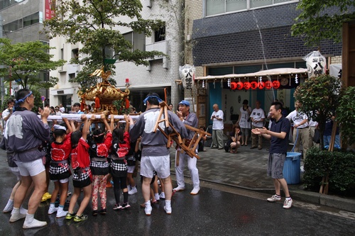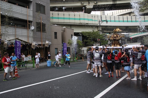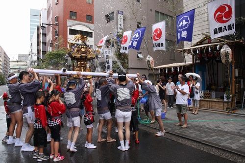 箱崎北新堀町会の神酒所前でも"差し"が決まります!