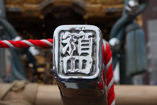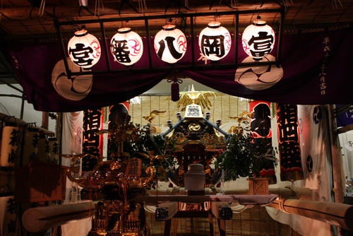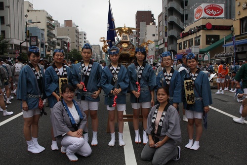 神輿の前で記念撮影デス。