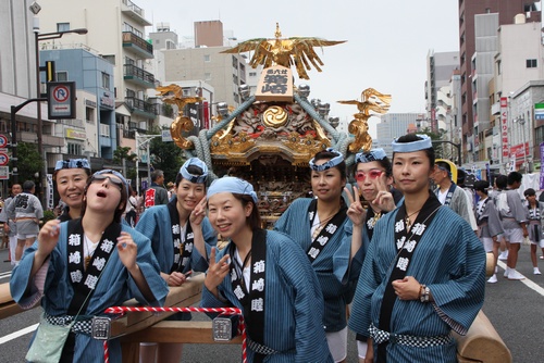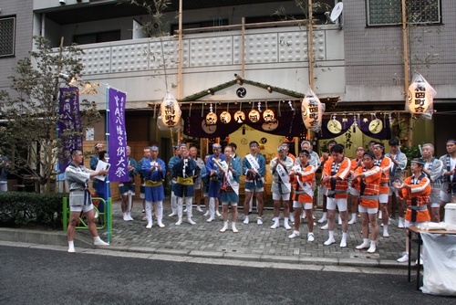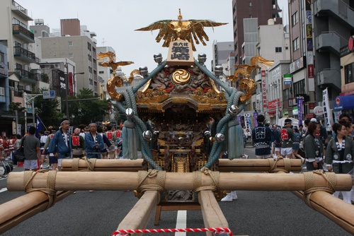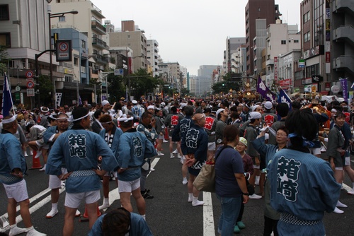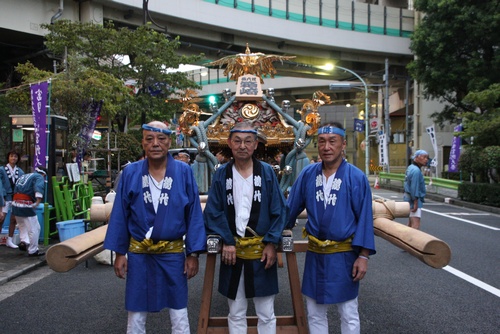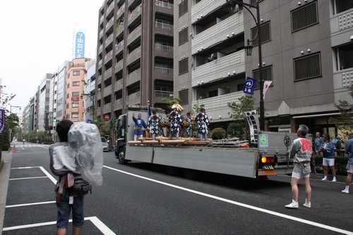 神輿はトラックに積んで、先に門前仲町へ運び込みます。