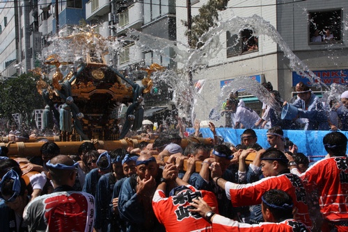 今年も佐賀町会の水かけは、豪快でしたね。