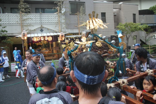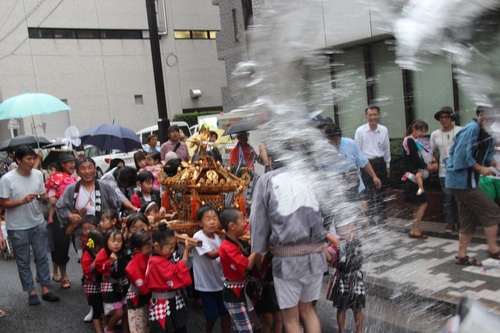 箱崎北新堀町会の神輿に、ザブ〜んと!