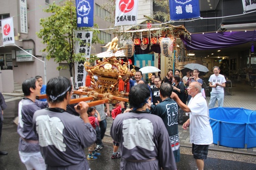 太鼓の皮が濡れては困るので、山車は途中離脱となったのが残念でした。