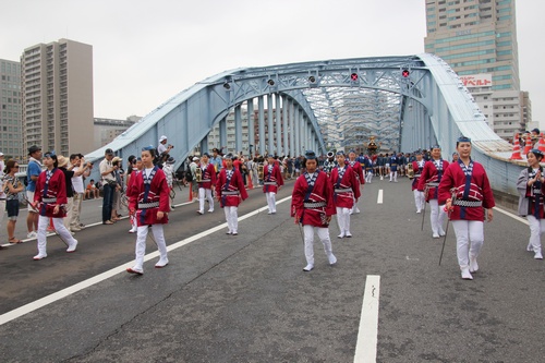 金棒引きの女性たち、永代橋の東詰まで来ました。
