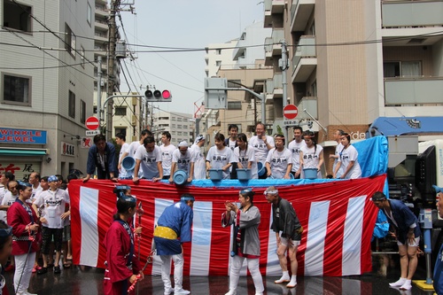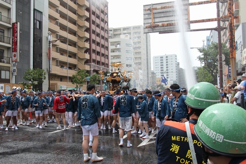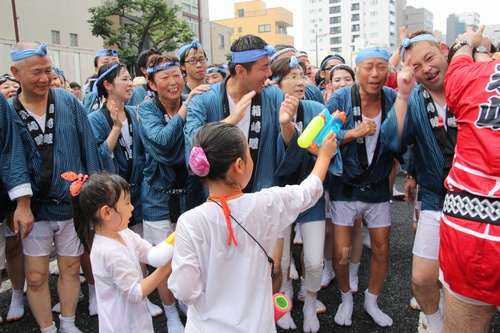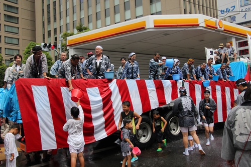 バケツ放水のお礼(?)に、門前仲町一丁目の神酒所で差し上げました。