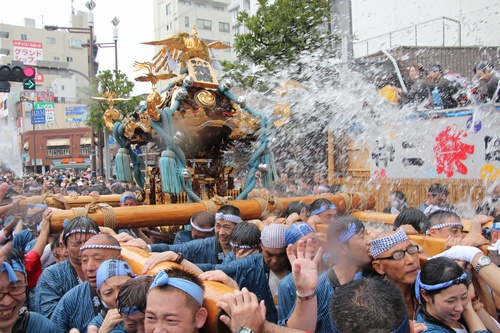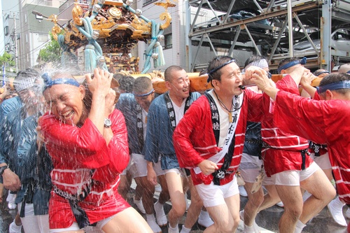 門前仲町二丁目の水かけも豪快でしたね。