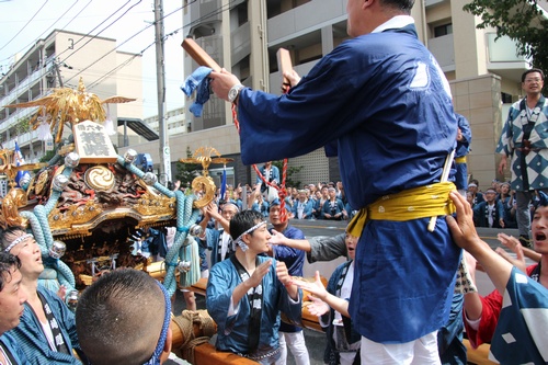 拍子木の音も高らかに! 無事に連合渡御を締め括ることが出来ました。