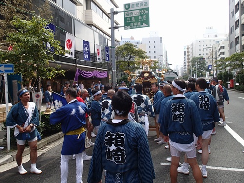 箱北〜箱二・三〜箱四の各神酒所の前を順で担ぐことになりました。