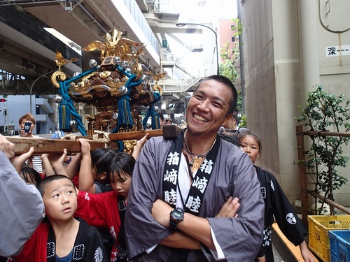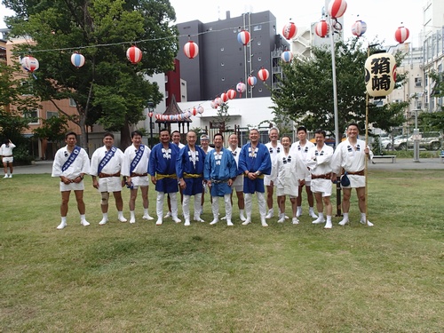 午後は、富岡八幡宮の二ノ宮神輿渡御です。箱崎睦会のメンバーが集まりました。