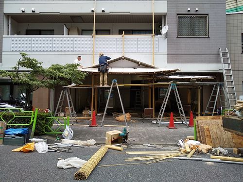 7月19日からは、いよいよ神酒所・御仮屋の工事が始まりました。