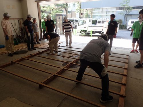 翌日の25日(日)、箱四町会では廃品回収作業の後に寄付板の設置作業を行いました。