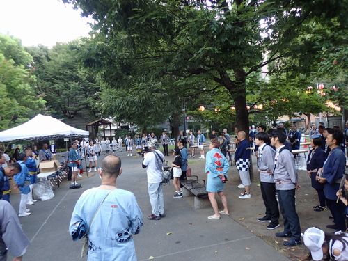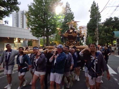 町内の皆さま、町内の企業にお勤めの皆さま、近隣町会の皆さまを迎えての町内神輿渡御がスタート。