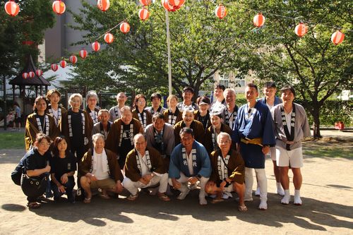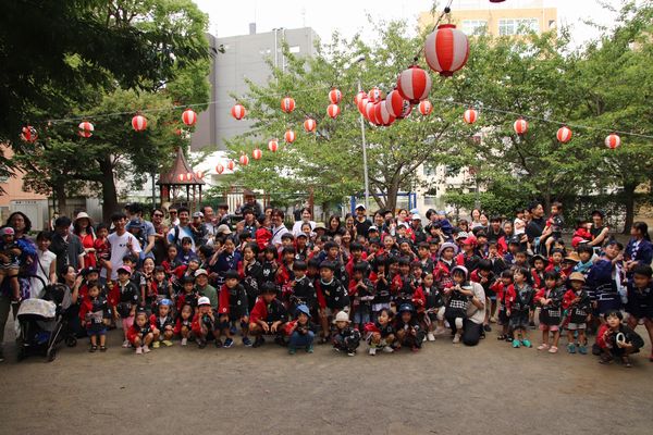 8月12日午前 子供神輿町内渡御に参加の子供たち+親御さん (こんな大勢になるとは思わなかったので、入りきらなかったかも?)